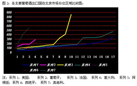 图2:各主要葡萄酒出口国在北京市场价位区域比较图:
