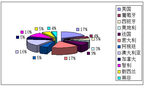 ▼此进口的12个国家分别为:美国、葡萄牙、西班牙、奥地利、法国、意大利、阿根廷、澳大利亚、加拿大、智利、新西兰和南非。